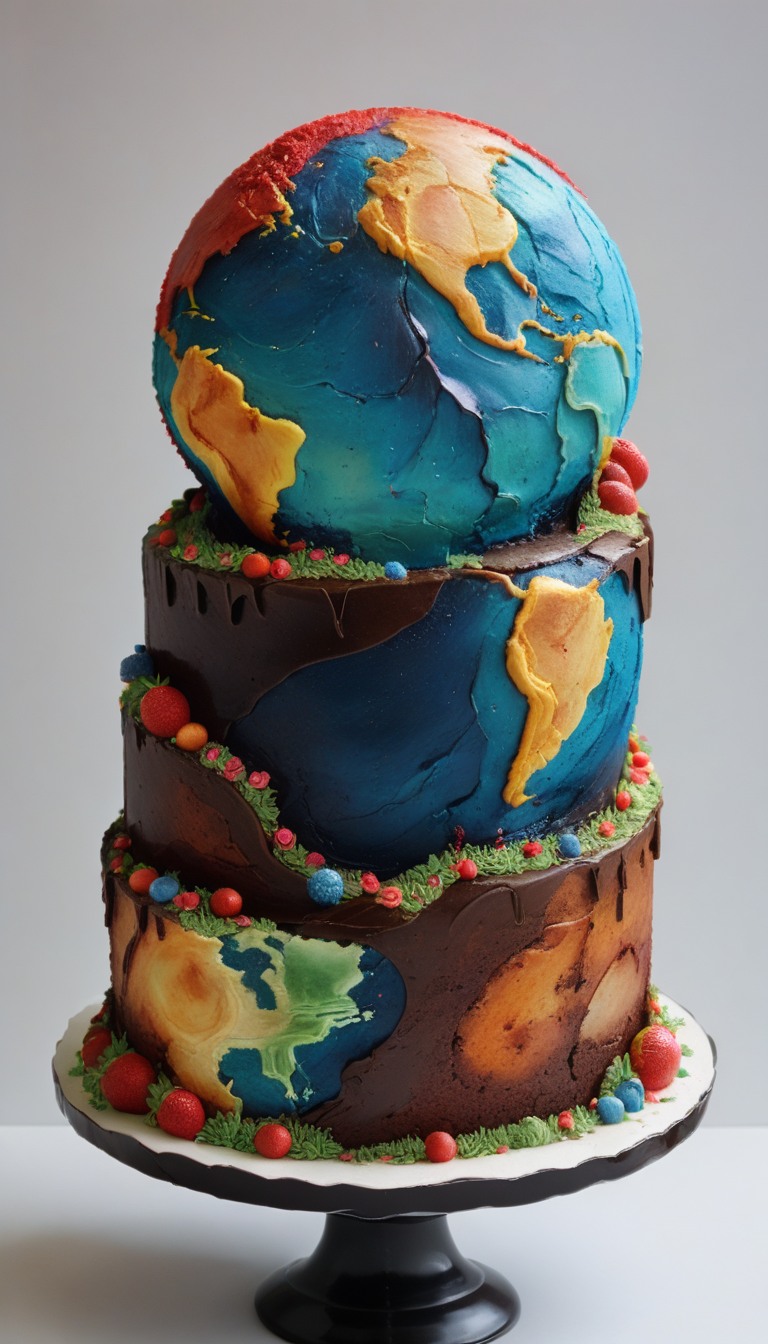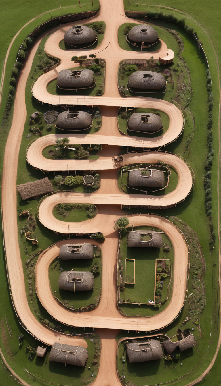 Left: The floor, made entirely from fantasy. Middle: Racetrack, made entirely from huts. Right: The world, made entirely from cake.